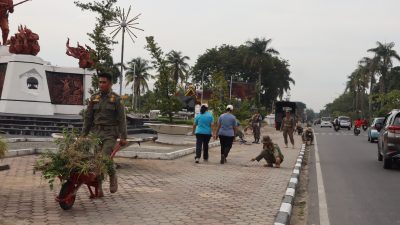 Kegiatan berlangsung dengan penuh semangat dan kebersamaan. Terlihat para anggota Satpol PP bahu membahu membersihkan area sekitar Tugu Pahlawan sebagai bentuk penghormatan terhadap jasa para pahlawan yang telah berjuang untuk bangsa.